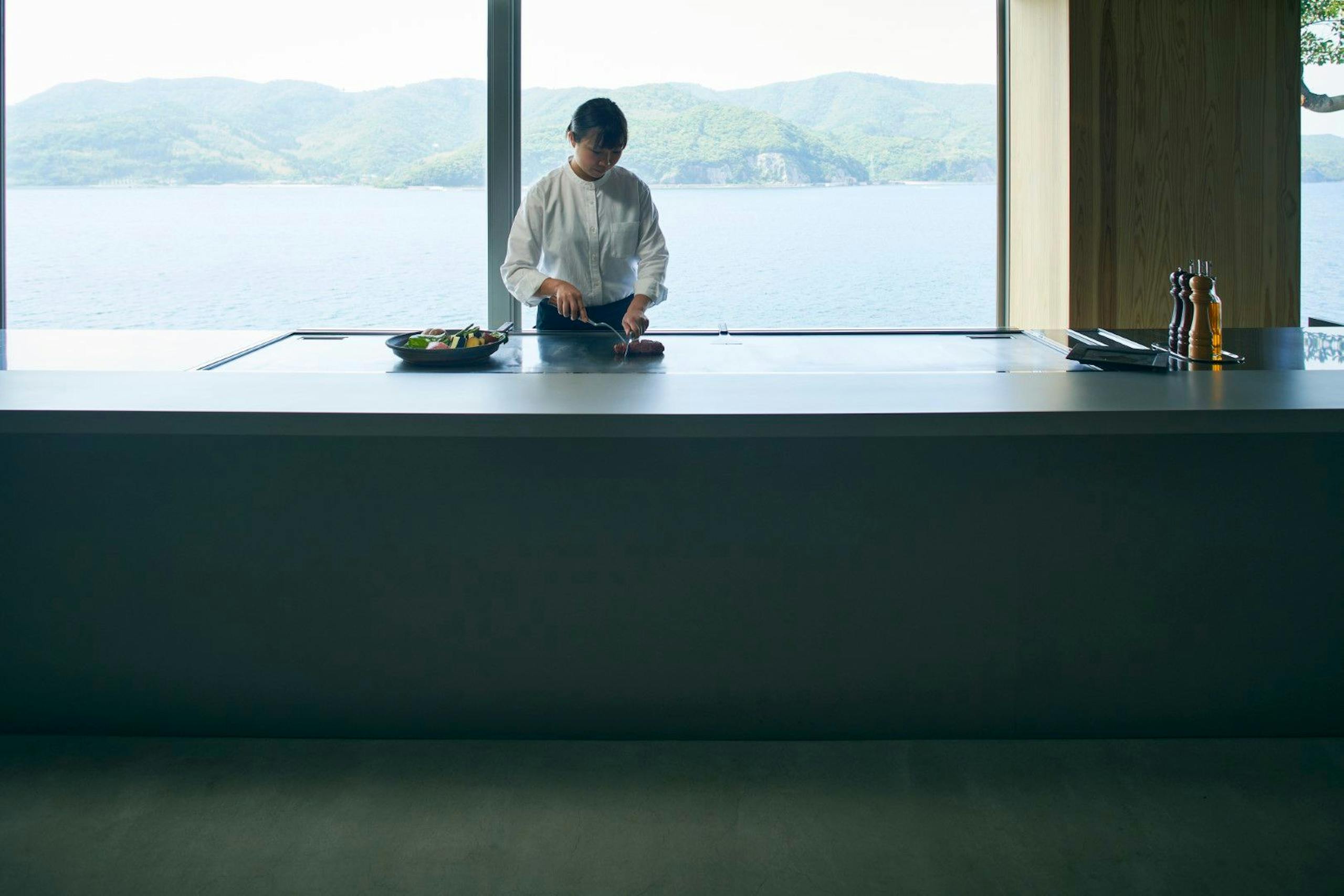 海が見えるレストラン「Entô Dining」では、目の前で出来立てを楽しめます。