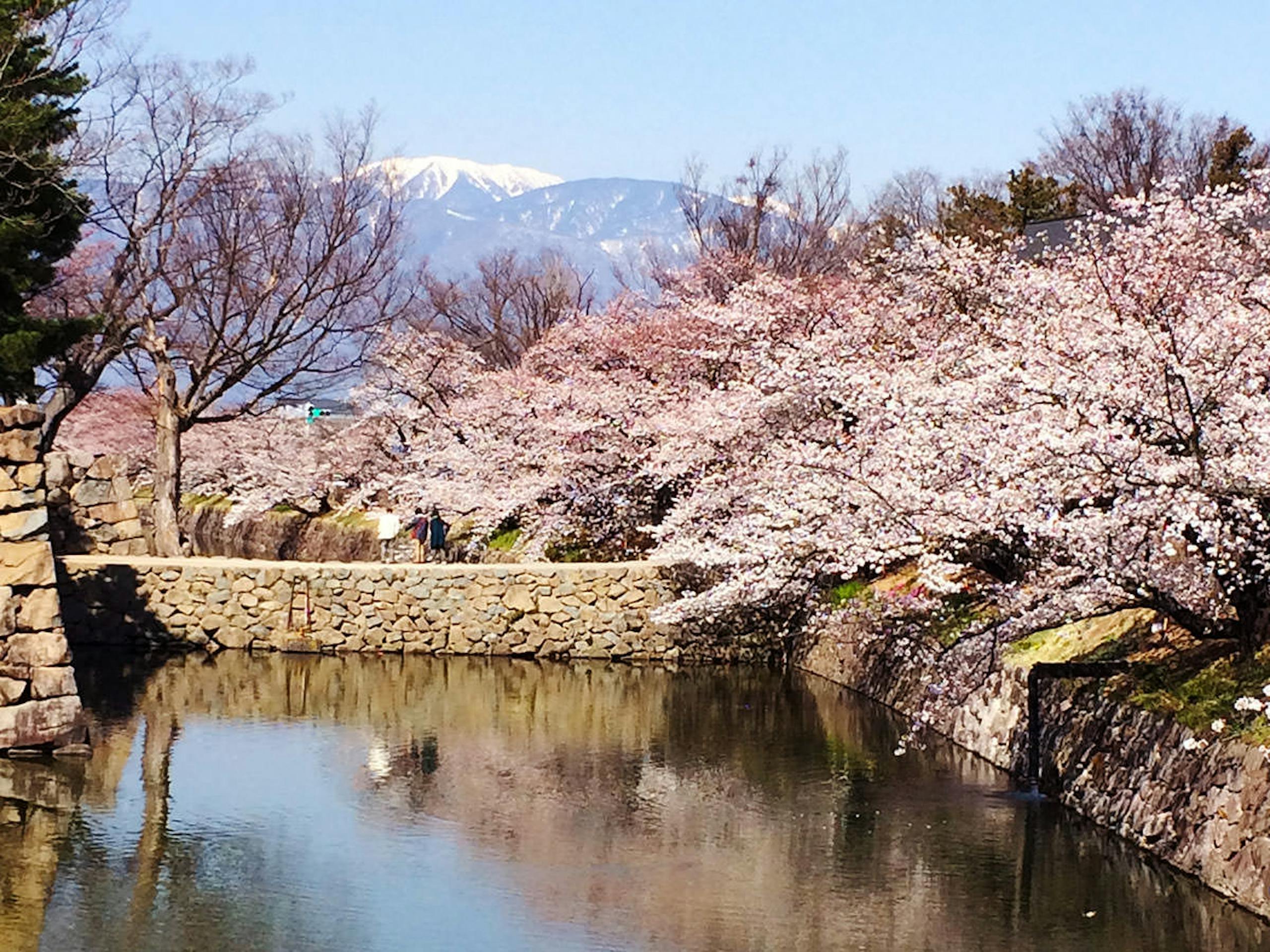 旅程に余裕があれば、泡の湯から1時間ほど車を走らせて国宝松本城へ。4月上旬からはお堀の桜が見頃を迎えます。