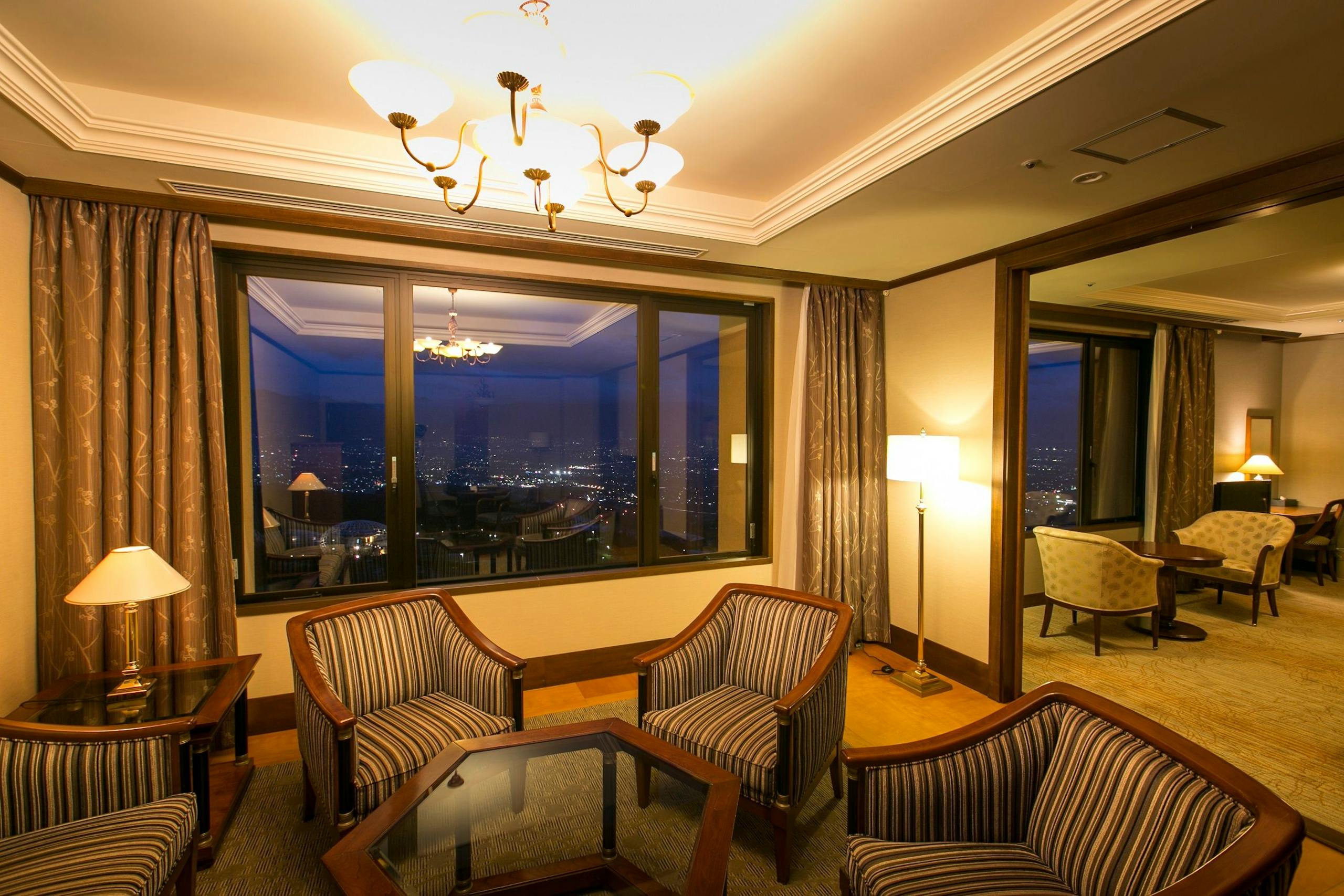 笛吹川の清流を見下ろす丘に佇む西洋館「フルーツパーク富士屋ホテル」。晴れた日には甲府盆地の大パノラマが広がり、南には世界遺産・霊峰富士、北東に大菩薩峠を望み、また、日が沈めば東日本から唯一選ばれた「新日本三大夜景」のひとつ、笛吹川フルーツ公園のライトアップが楽しめます。