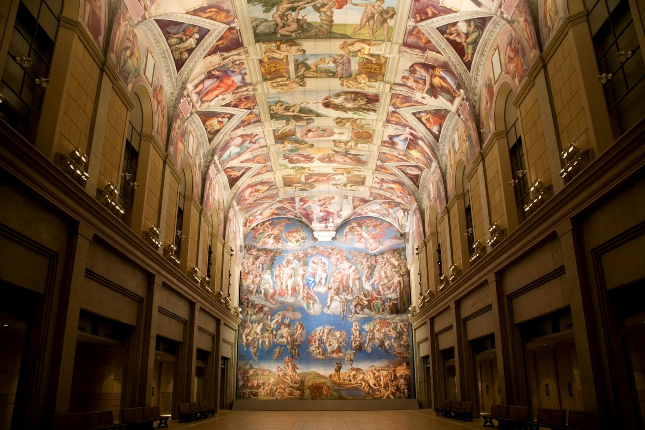 美術館の展示は、古代から現代に至るまでの西洋美術史を網羅しており、とくに「システィーナ礼拝堂」は、ミケランジェロの天井画と壁画を忠実に再現、その迫力には圧倒されるでしょう。また、「最後の晩餐」や「モナ・リザ」などの名作も展示されています。陶板による再現のため、作品の劣化や保護ガラス越しではなく、作品に近づいて観察できるのも特徴です。大塚国際美術館では、作品の背景や作者の意図を学ぶことができるオーディオガイドも充実しており、芸術に詳しくない人も楽しめます。また、広大な館内にはレストランやカフェも併設されているので、美術鑑賞の合間の食事や休憩に利用しましょう。