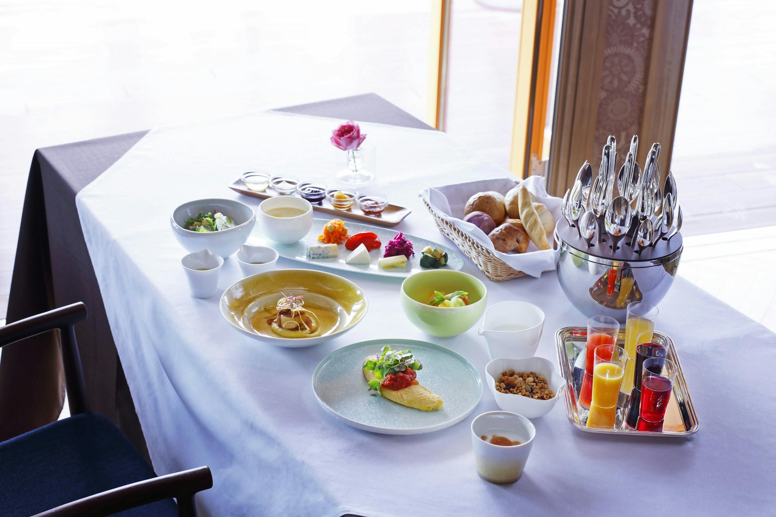 朝は、鳥のさえずりを聞きながら朝食を楽しみます。朝食には、地元で採れた新鮮な野菜やフルーツ、自家製のパンやジャムが並び、体に優しいヘルシーなメニューが提供されます。自然の中で心地よい朝のひとときを過ごし、観光に備えてリフレッシュしましょう。