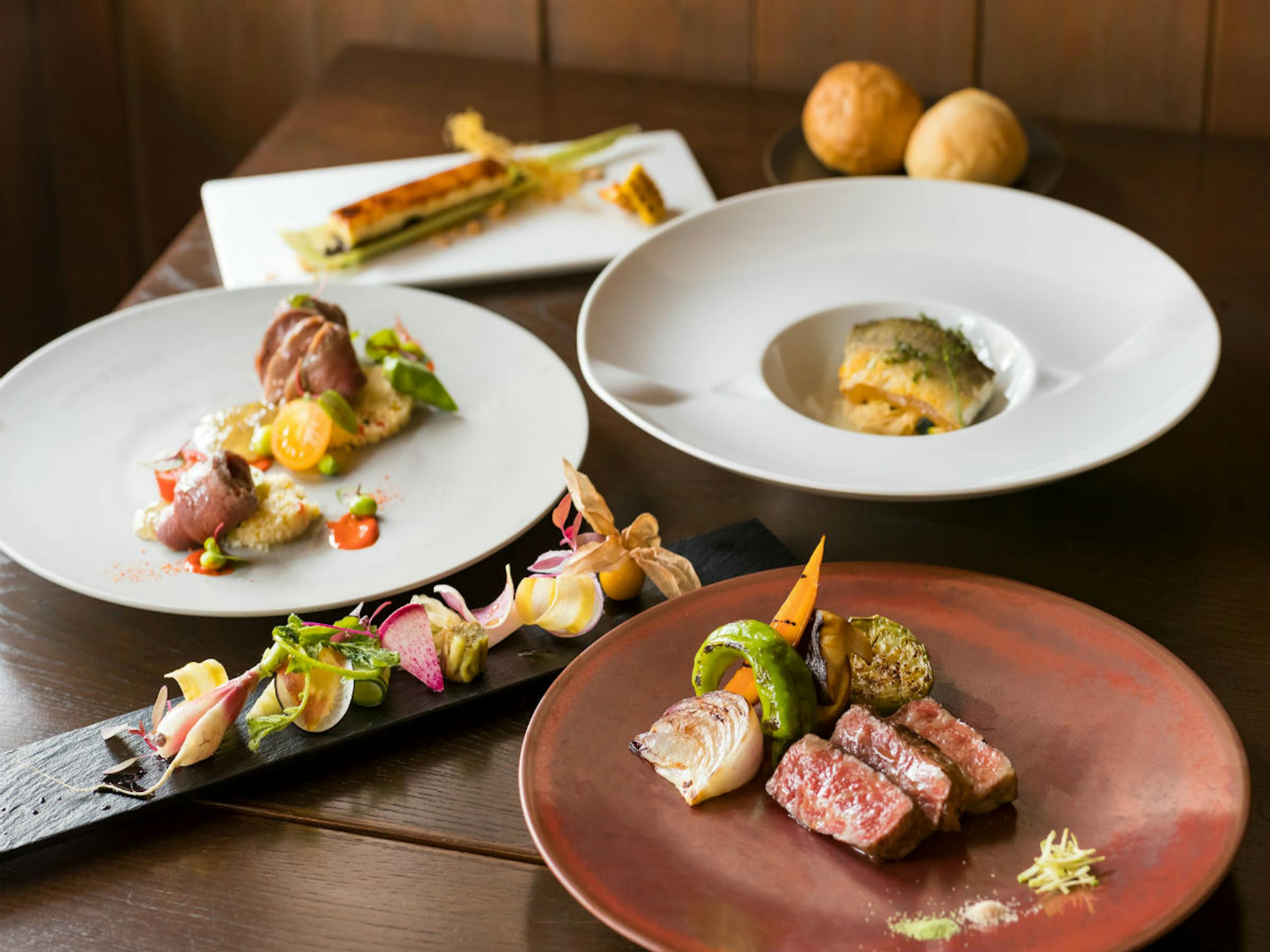 地元で採れた新鮮な食材を活かした料理が、この宿のもう一つの大きな魅力です。特に旬の食材を使用したフレンチディナーは、多くの宿泊客から絶賛されています。丹波篠山の名産である黒豆や栗、ジビエをはじめ地元特有の味覚をふんだんに取り入れたメニューは五感で楽しむことができます。