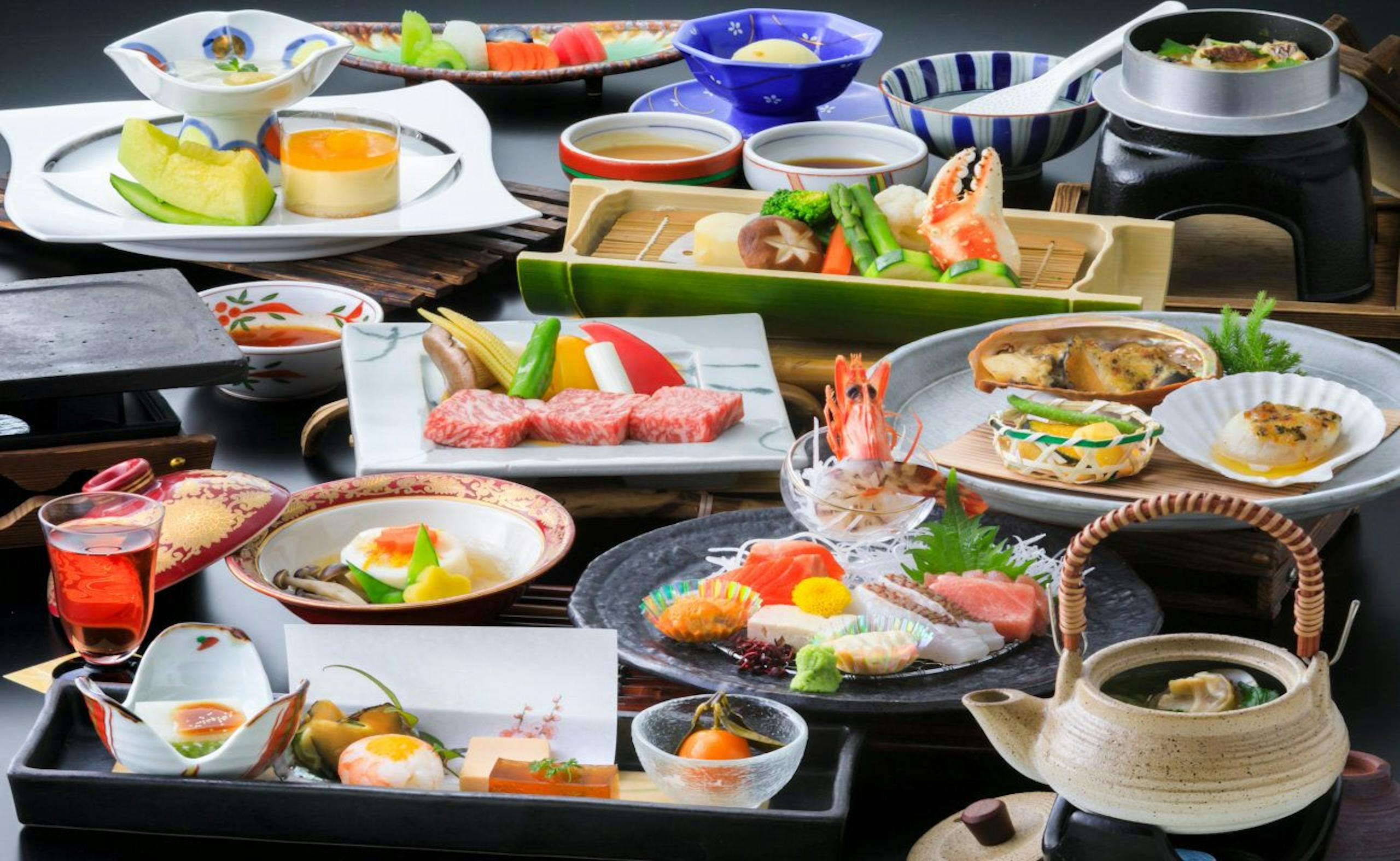 山梨県の豊かな自然が育んだ旬の食材をふんだんに使用した会席料理が自慢です。四季折々の味覚を楽しむことができ、料理長が心を込めて手掛ける一皿一皿は、美しい盛り付けも見どころの一つです。また、料理に合う地元の銘酒やワインも豊富に揃っており、食事とともに山梨ならではの味わいを楽しむことができます。