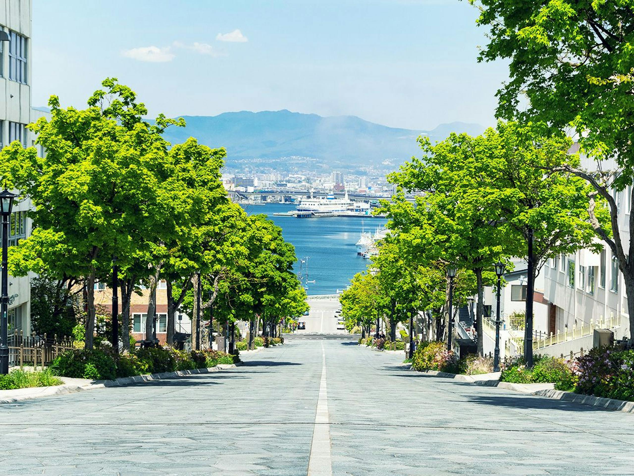 有名な「八幡坂(はちまんざか)」から見下ろす坂の先に広がる函館港の眺めはとてもフォトジェニックで、昼間の爽やかな景色も夜のロマンチックな雰囲気も格別です。